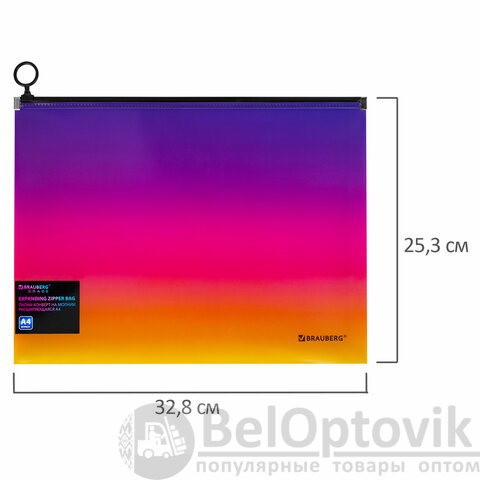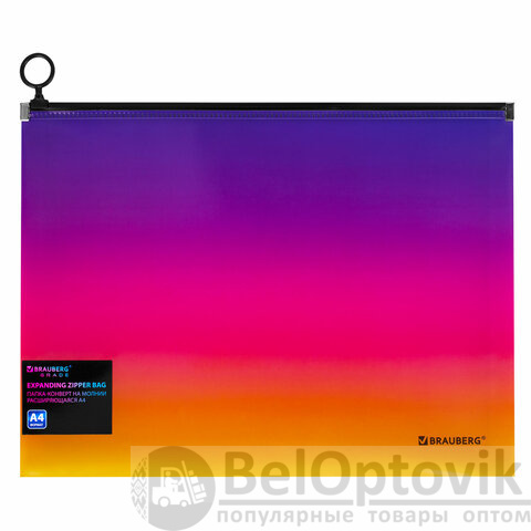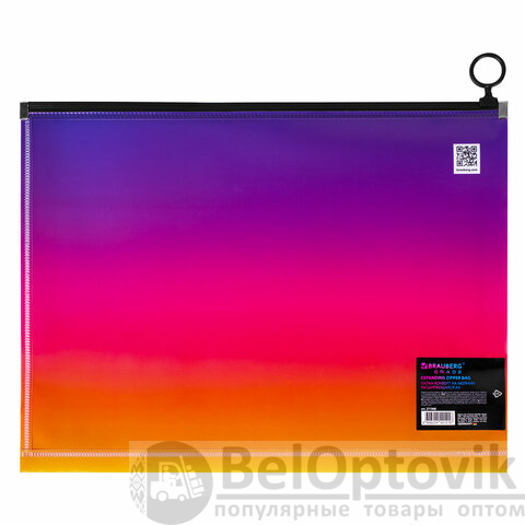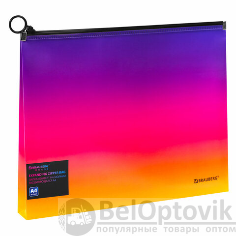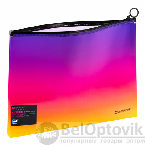 Папка-конверт расширяющаяся на молнии BRAUBERG "Grade", А4, до 300 листов, желто-розовый градиент 0,18 мм, 271968