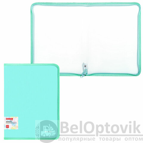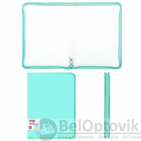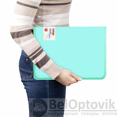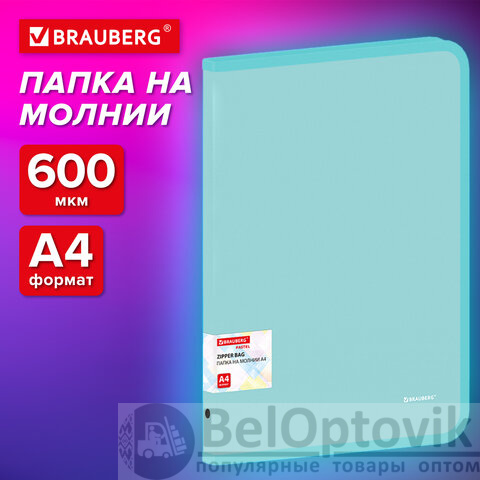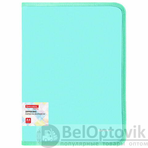 Папка объемная на молнии пластиковая BRAUBERG PASTEL, А4, 330х240 мм, 600 мкм, цвет мятный, 271973