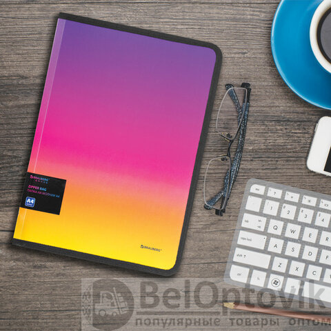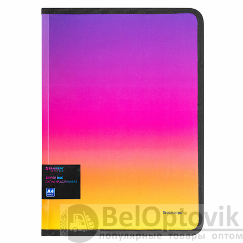 Папка объемная на молнии пластиковая BRAUBERG "Grade", А4, 330х240 мм, 600 мкм, желто-розовый градиент, 271976