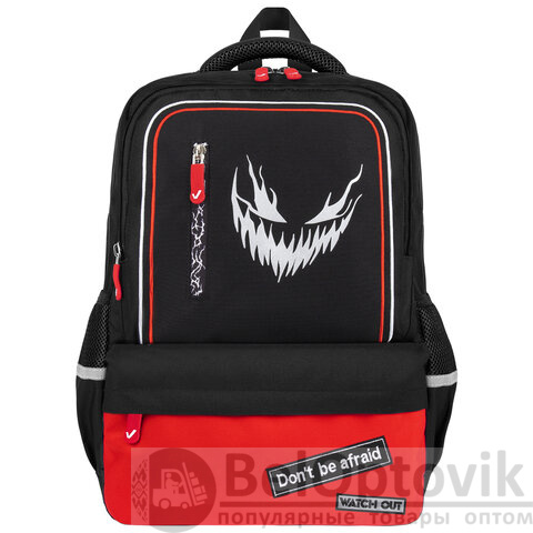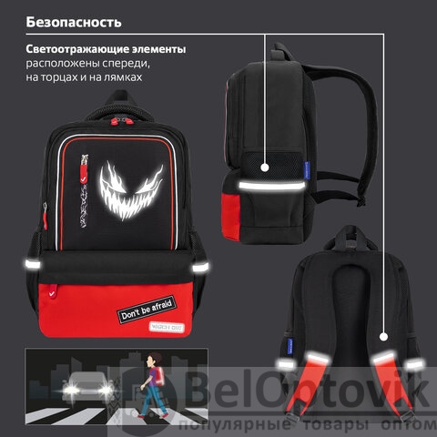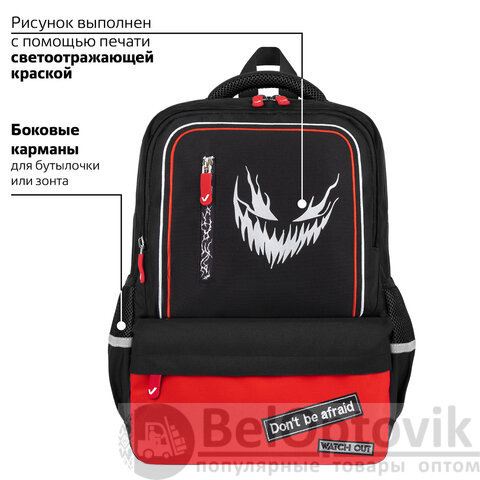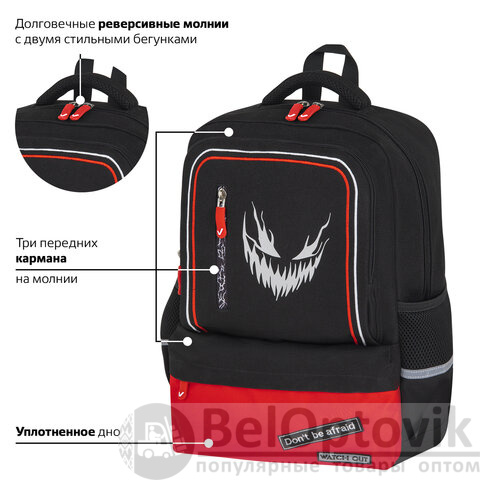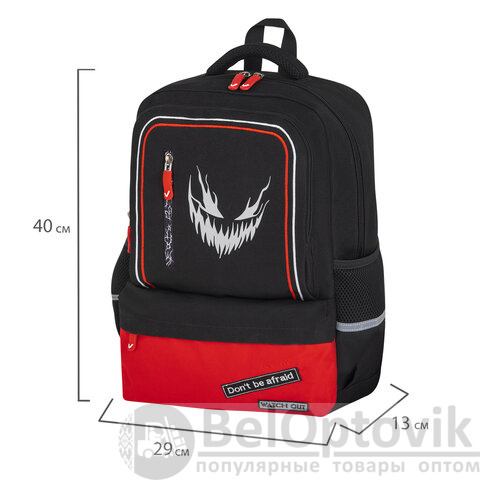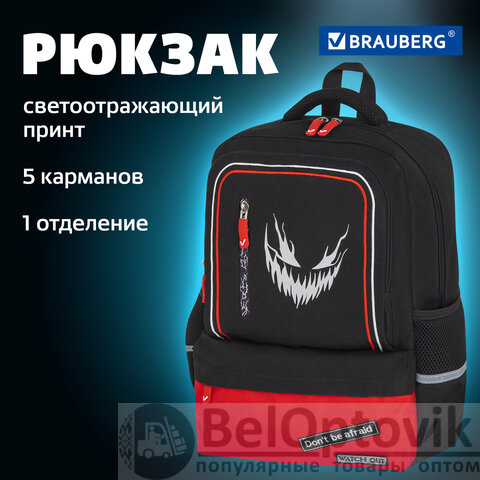 Рюкзак BRAUBERG STAR, 1 отделение, 5 карманов, "Scary face", черный, 40x29x13 см, 272060