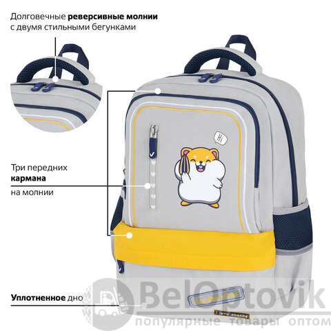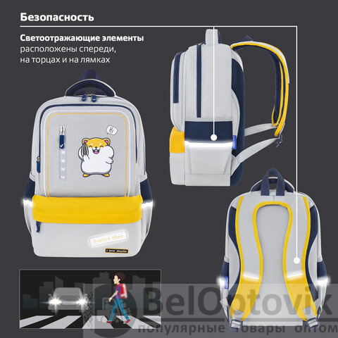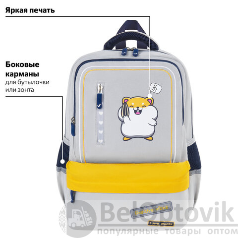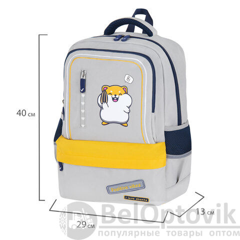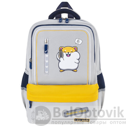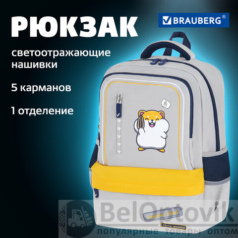 Рюкзак BRAUBERG STAR, 1 отделение, 5 карманов, "Hamster", серый, 40x29x13 см, 272063