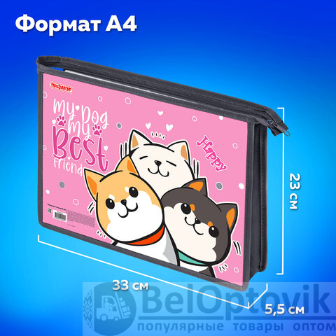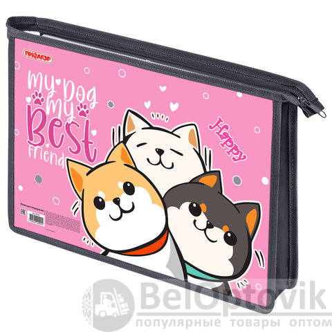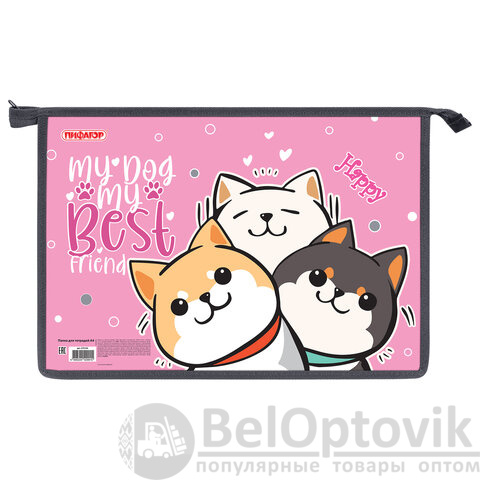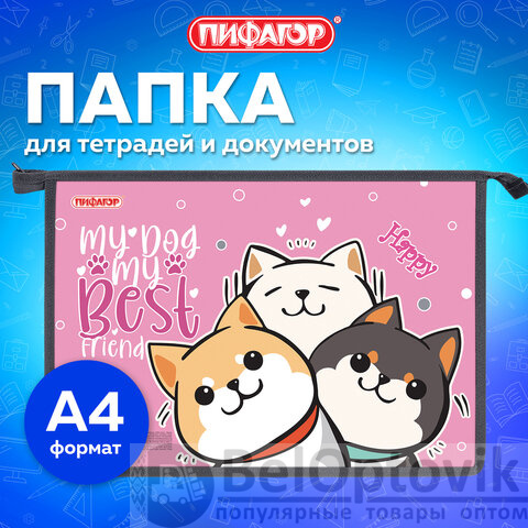 Папка для тетрадей ПИФАГОР А4, 1 отделение, картон/пластик, на молнии, "Best team", 272124