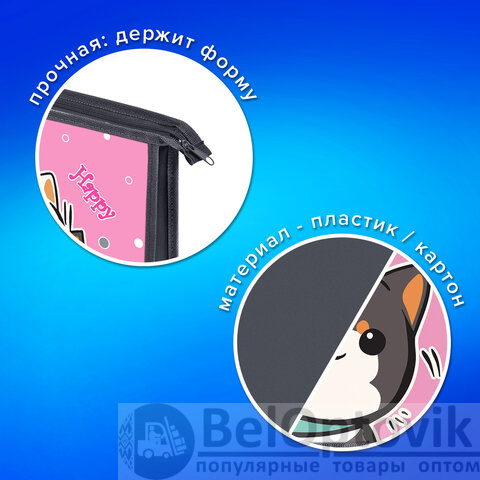 Папка для тетрадей ПИФАГОР идеально подходит для транспортировки и хранения канцелярских принадлежностей и учебных пособий формата А4. Яркая печать коллекционного дизайна на передней части папки, изготовленной из ламинированного картона. Оборотная часть папки изготовлена из прочного однотонного пластика. Застежка-молния, расположенная сверху обеспечивает надежную защиту и легкий доступ к содержимому.