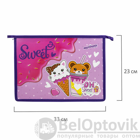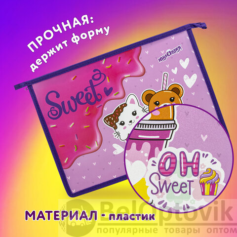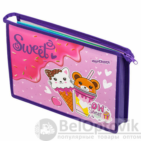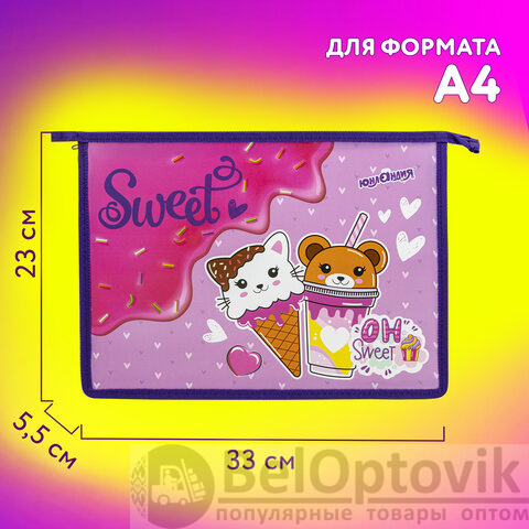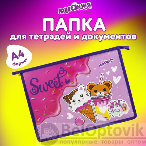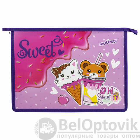 Папка для тетрадей ЮНЛАНДИЯ А4, 1 отделение, пластик, на молнии, "Candy friends", 272139
