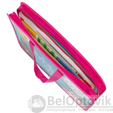 Папка выполнена из износостойкого пластика. Яркая и четкая печать дизайна с двух сторон. Застегивается на молнию сверху. С помощью двойных ручек, выполненных из плотной тесьмы, можно переносить папку в руках, а также вешать ее на крючок под партой или в раздевалке. Подходит для тетрадей, учебных пособий и документов формата А4. Ширина папки - 45 мм.