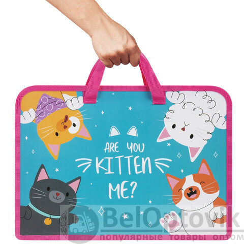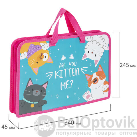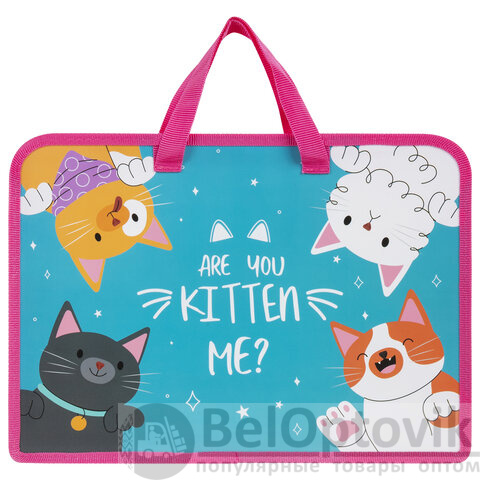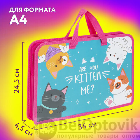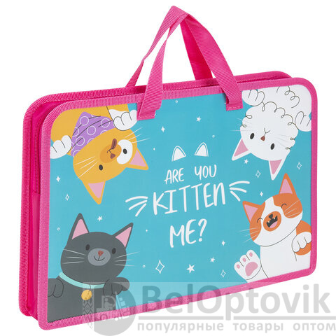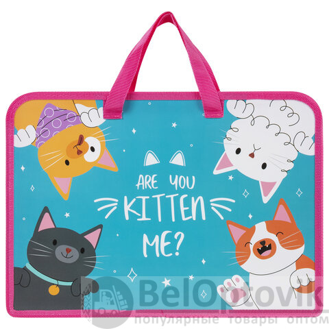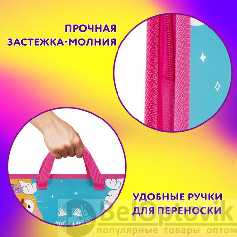 Папка на молнии с ручками ЮНЛАНДИЯ А4, 1 отделение, пластик, ширина 45 мм, "Cat gang", 272148