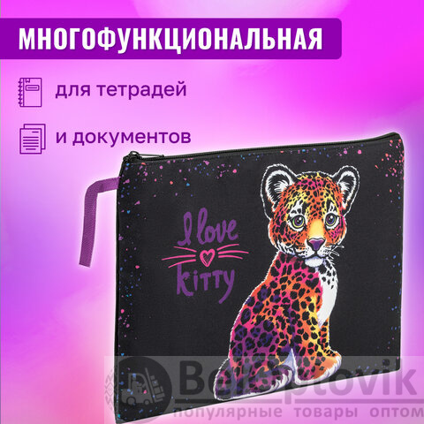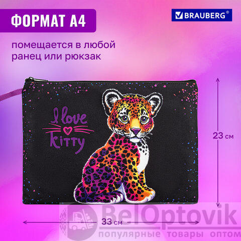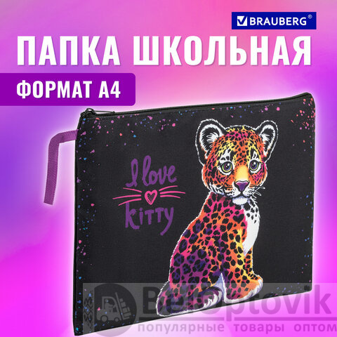 Папка для тетрадей BRAUBERG А4, 1 отделение, полиэстер, на молнии, с ручкой, "Leopard", 272170