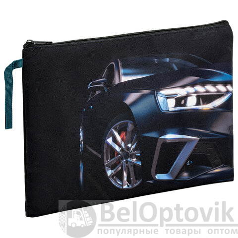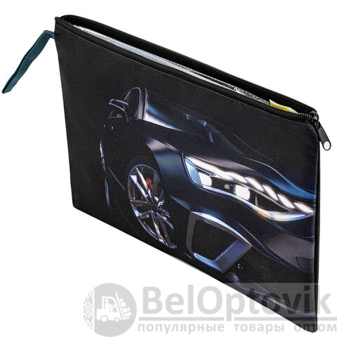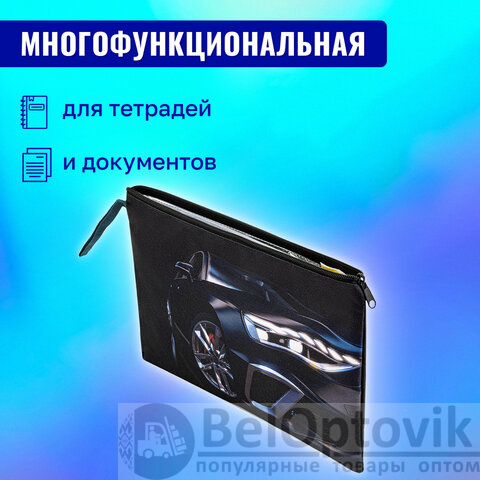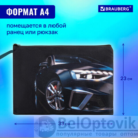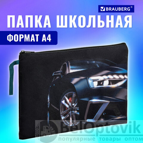Папка для тетрадей BRAUBERG А4, 1 отделение, полиэстер, на молнии, с ручкой, Super car, 272171