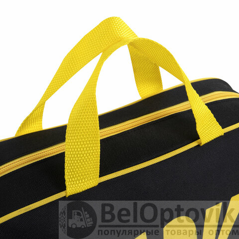 Папка для тетрадей формата А4 с ручками для переноски изготовлена из прочного полиэстера. Внутри одно отделение, застегивается на молнию по верхнему краю.