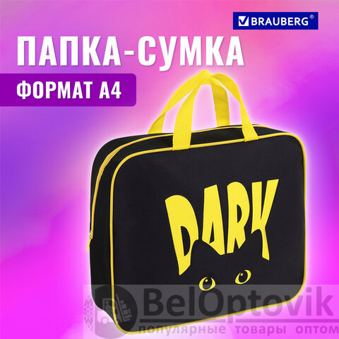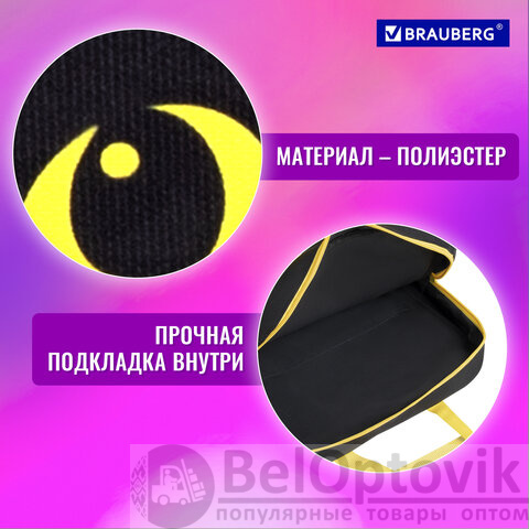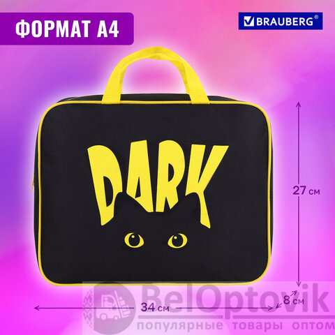 Папка на молнии с ручками BRAUBERG А4, 1 отделение, полиэстер, 80 мм, "Dark cat", 272178