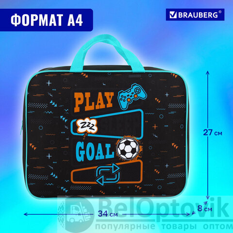 Папка на молнии с ручками BRAUBERG А4, 1 отделение, полиэстер, 80 мм, "Play sleep repeat", 272181