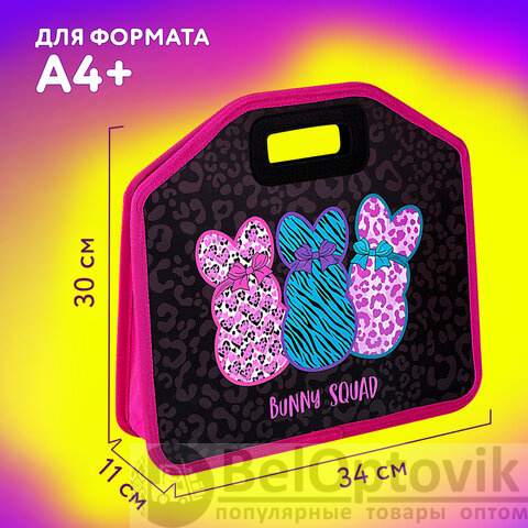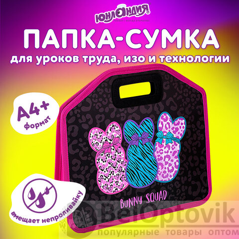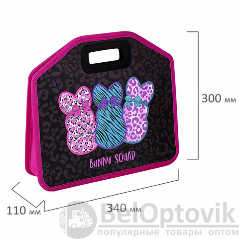 Папка-сумка ЮНЛАНДИЯ, 1 отделение, фетровые ручки, 34х30х11 см, Bunny squad, 272205
