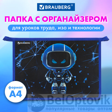 Папка для труда на молнии BRAUBERG А4, 2 отделения, органайзер, "Evil robot", 272212
