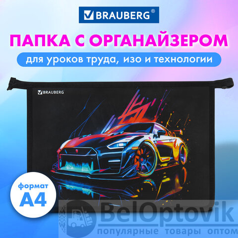Папка для труда BRAUBERG формата А4 предназначена для хранения канцелярских и творческих принадлежностей. Имеет два отделения, органайзер внутри.