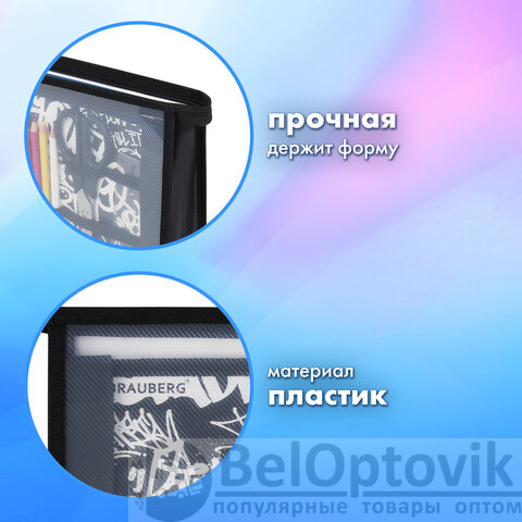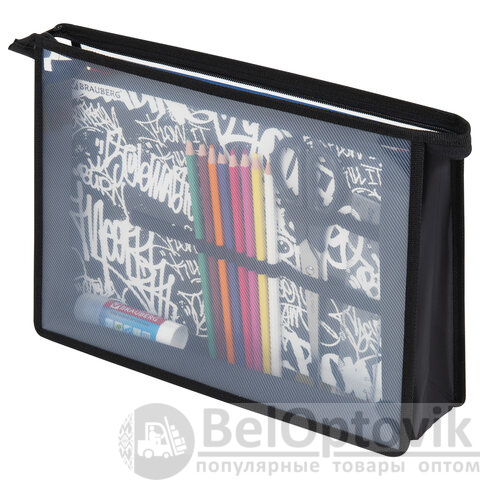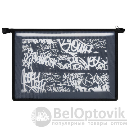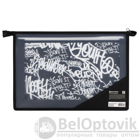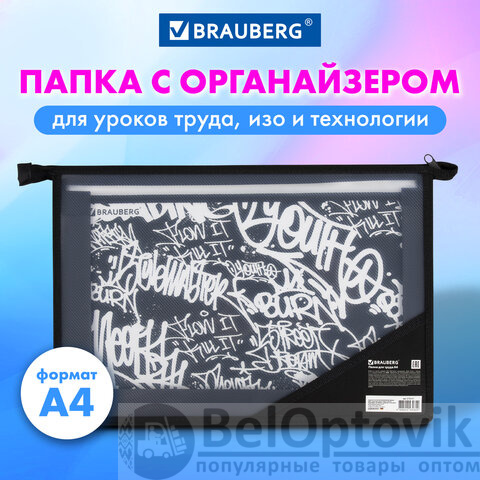 Папка для труда BRAUBERG А4, 2 отделения, пластик, молния сверху, органайзер, "Graffiti", 272215