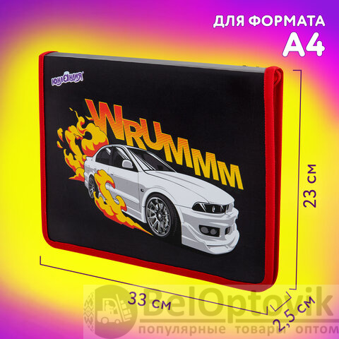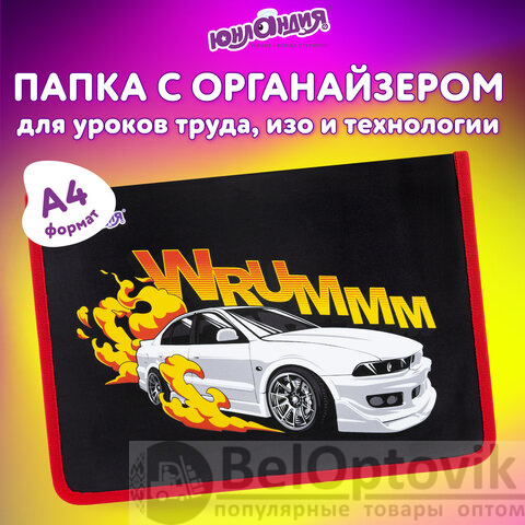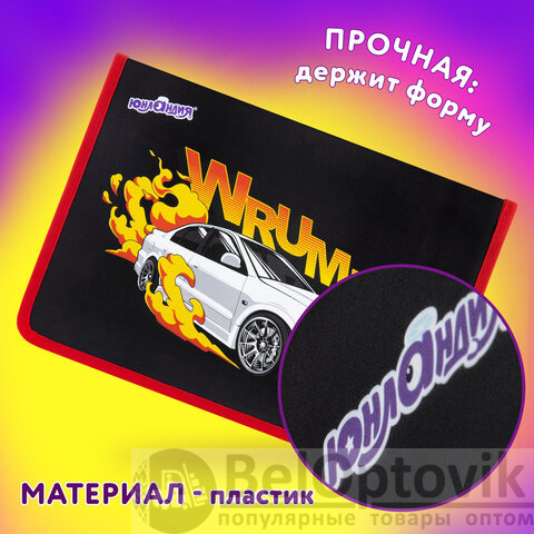 Папка для труда на молнии ЮНЛАНДИЯ А4, 1 отделение, откидная планка, органайзер, "Wrum", 272225