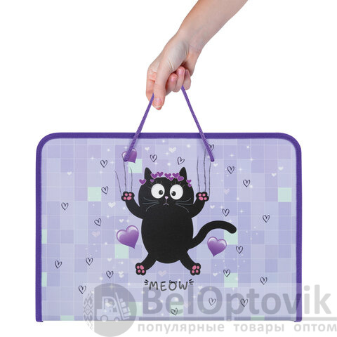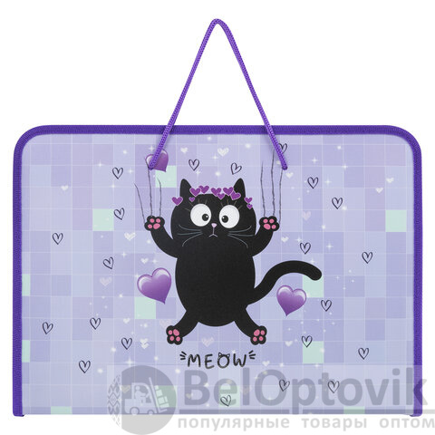 Папка для труда ПИФАГОР А4 "Falling cat" с ручками предназначена для хранения и переноски тетрадей, альбома для рисования, цветной бумаги, картона и прочих бумаг.