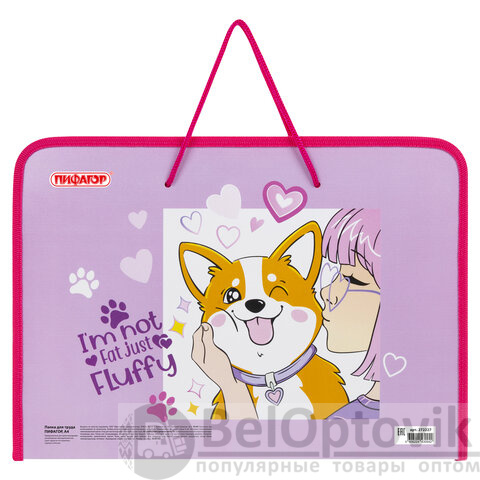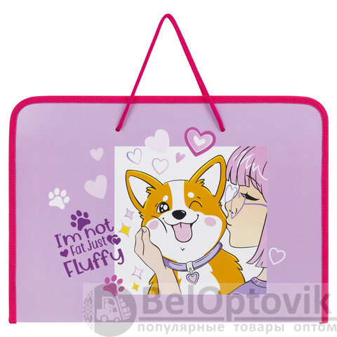 Папка для труда ПИФАГОР А4 "Fluffy akita" с ручками предназначена для хранения и переноски тетрадей, альбома для рисования, цветной бумаги, картона и прочих бумаг.
