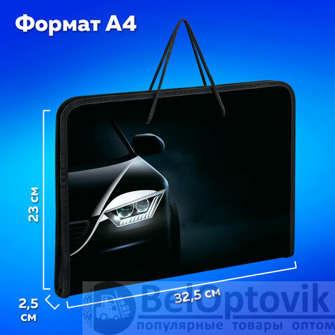 Папка для труда на молнии с ручками ПИФАГОР А4, 1 отделение, пластик, органайзер, "Car flash", 272231