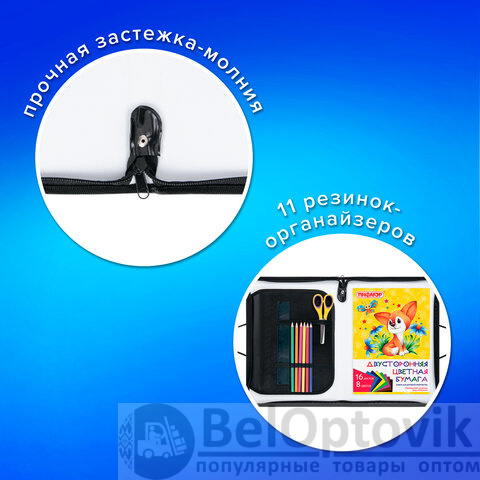 Папка идеально подходит для транспортировки и хранения канцелярских принадлежностей и учебных пособий формата А4. Изготовлена из прочного износостойкого пластика. Яркая печать коллекционного дизайна с обеих сторон папки. Внутри – откидная планка с органайзером, которая позволяет хранить канцелярские и письменные принадлежности. Застежка-молния, расположенная с трех сторон, обеспечивает надежную защиту и легкий доступ к содержимому.
