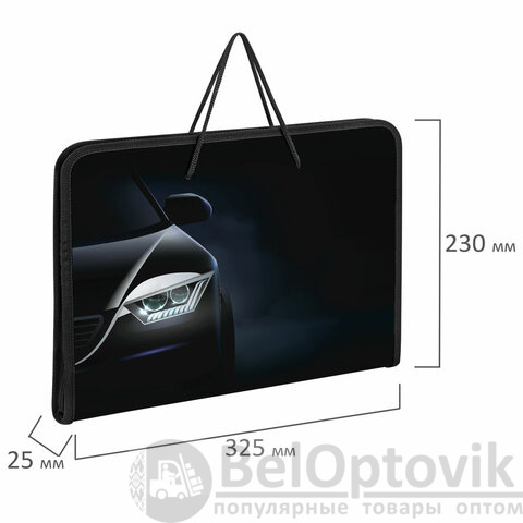 Размер папки – 33х23 см, ширина – 2,5 см. Оснащена ручками-шнурками для удобной переноски. Компактный и легкий дизайн делает папку удобной для ежедневного использования.