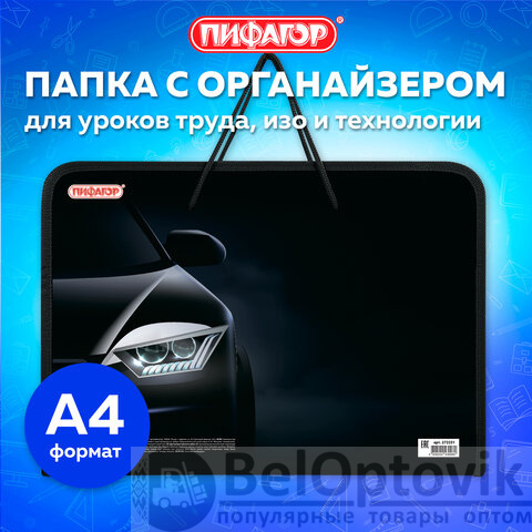 Папка для труда ПИФАГОР А4 "Car flash" с ручками предназначена для хранения и переноски тетрадей, альбома для рисования, цветной бумаги, картона и прочих бумаг.