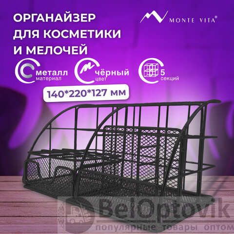 Органайзер для косметики и мелочей металлический 5 секций, MONTE VITA, 140х220х127 мм, чёрный, 272478