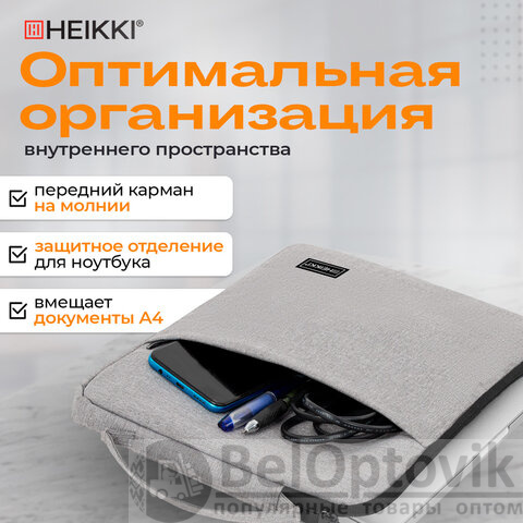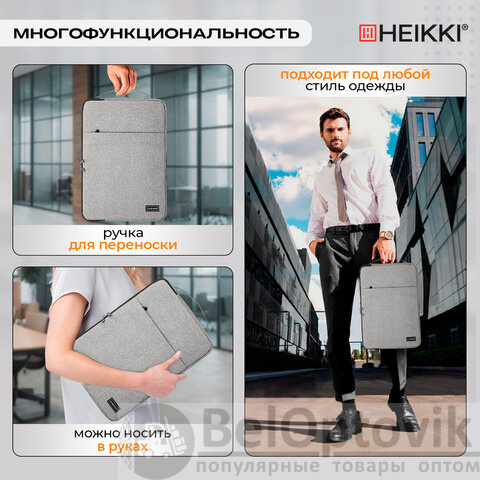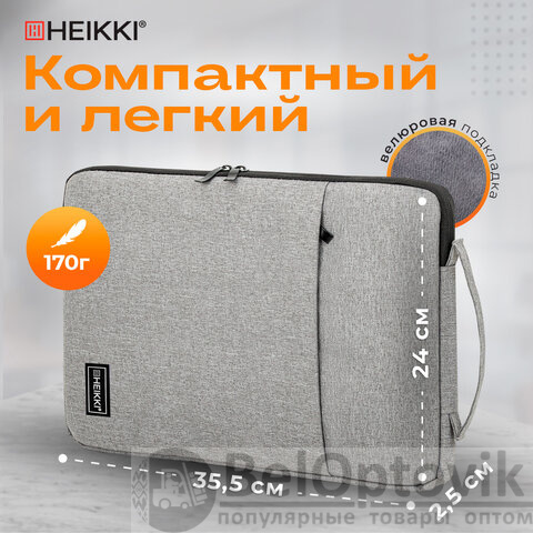 Чехол для ноутбука HEIKKI OPTION 13-14'' (ХЕЙКИ), с ручкой и карманом, серый, 35,5х24х2,5 см, 272600