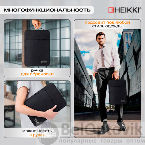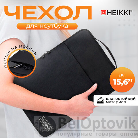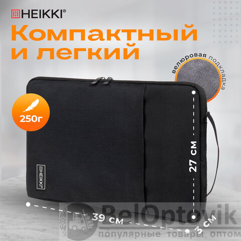 Чехол для ноутбука HEIKKI OPTION MAX 15,6'' (ХЕЙКИ), с ручкой и карманом, черный, 39х27х3 см, 272602