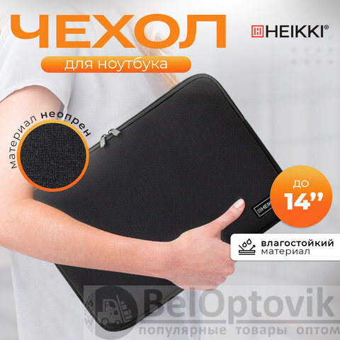 Чехол для ноутбука HEIKKI SLIM 13-14'' (ХЕЙКИ), неопрен, Case, черный, 26х37х2,5 см, 272605