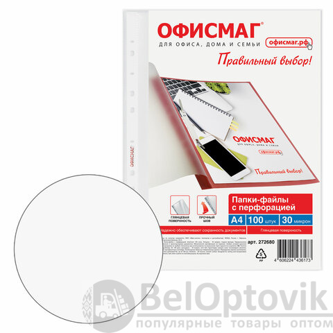 Перфорированные папки-файлы ОФИСМАГ "Стандарт" предназначены для хранения и защиты бумажных документов от загрязнения и механических повреждений.