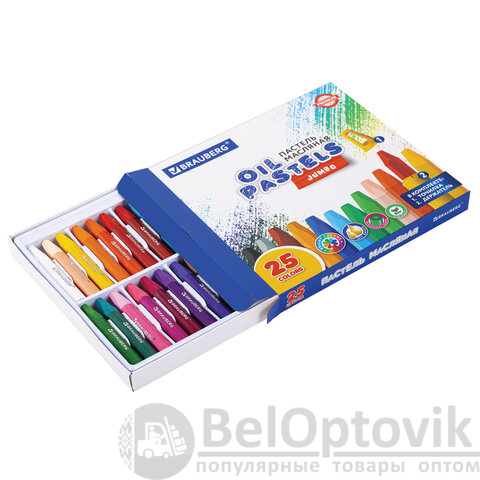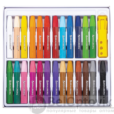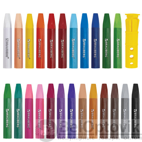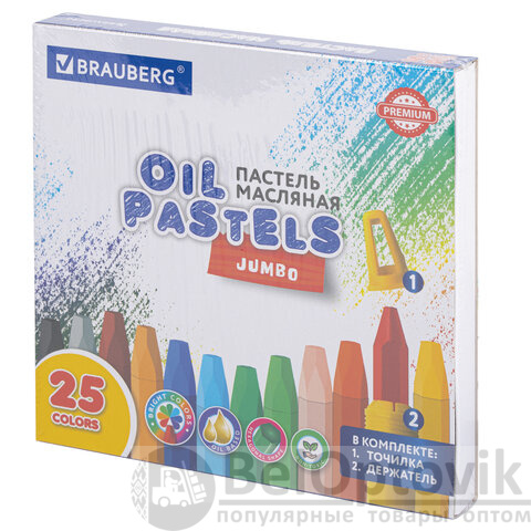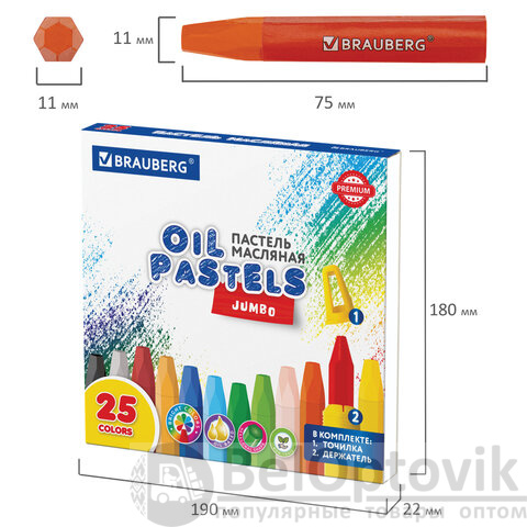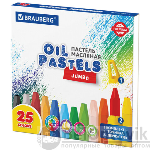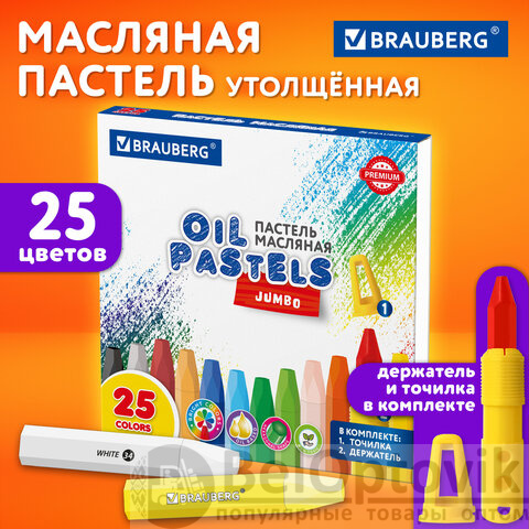 Пастель масляная восковые мелки утолщенные 25 цветов с точилкой и держателем, BRAUBERG PREMIUM, 272712