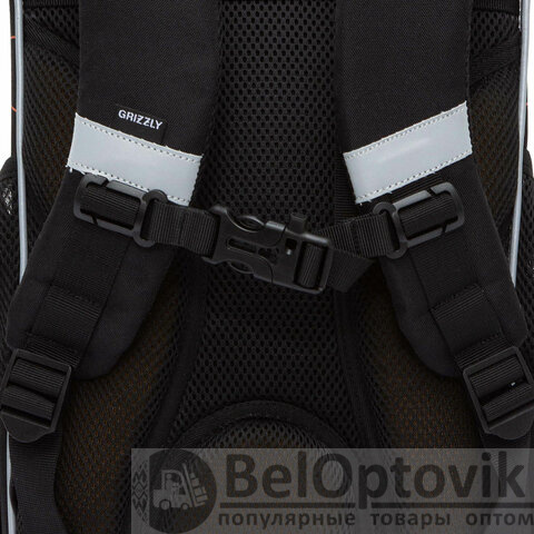 Жесткая конструкция, анатомическая спинка, вентилируемые лямки и грудная стяжка со свистком равномерно распределяют вес ранца GRIZZLY по спине ребенка. Жесткое дно и боковины не деформируются при нагрузке и создают надежную защиту содержимого.