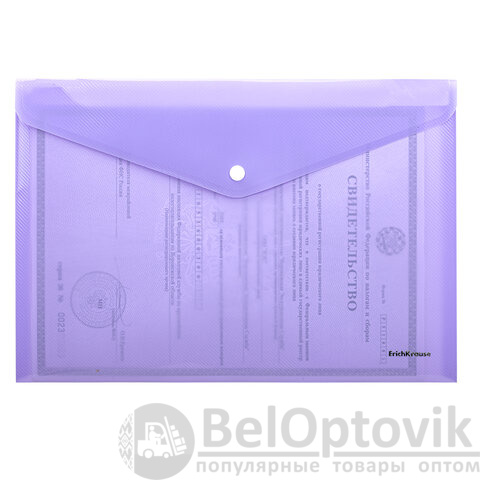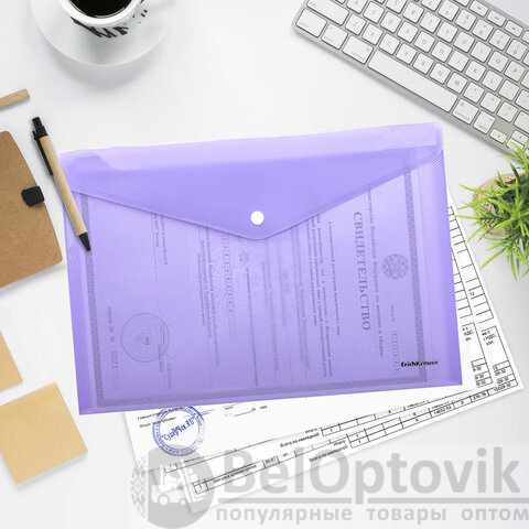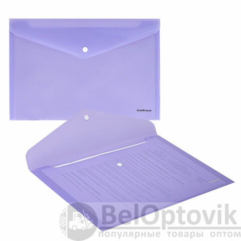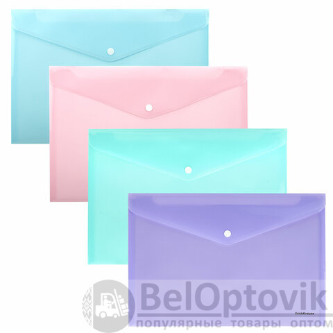 Папка-конверт с кнопкой ERICH KRAUSE "Diagonal Pastel" А4 из высококачественного непрозрачного пластика с текстурой поверхности "диагональ", на которой не видно отпечатков пальцев и мелких царапин.