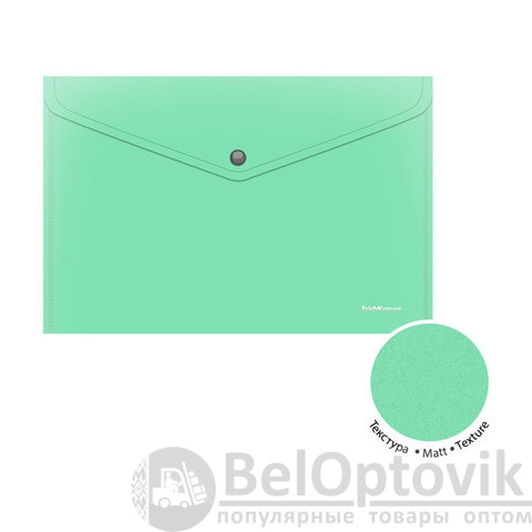 Папка-конверт на кнопке ERICH KRAUSE "Matt Pastel Bloom" формата А4 из высококачественного непрозрачного пластика с текстурой поверхности "песок", на которой не видно отпечатков пальцев и мелких царапин.