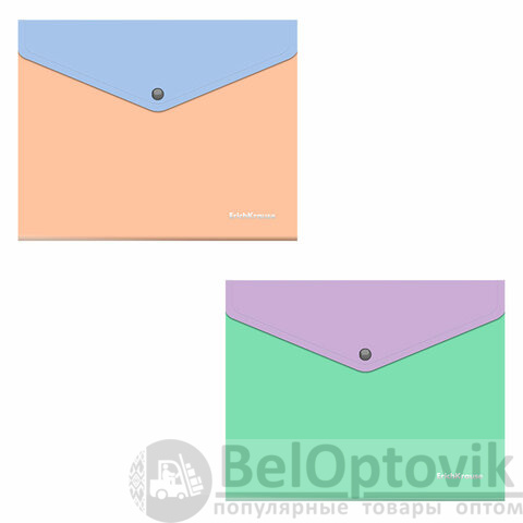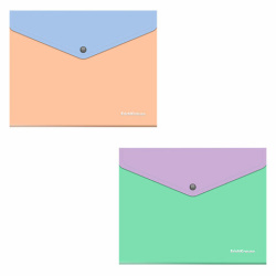 Предназначена для хранения и транспортировки небольшого количества документов. Цвет папки – ассорти: голубой, зеленый, персиковый, фиолетовый. Надежная застежка-кнопка обеспечивает быстрый доступ к документам. Размер – 240x191мм, толщина – 0,18 мм.