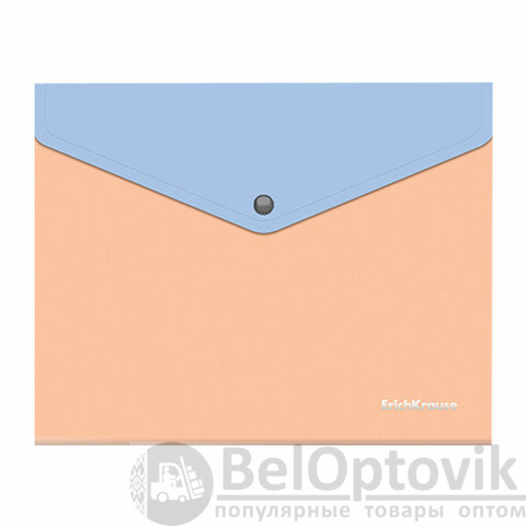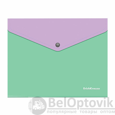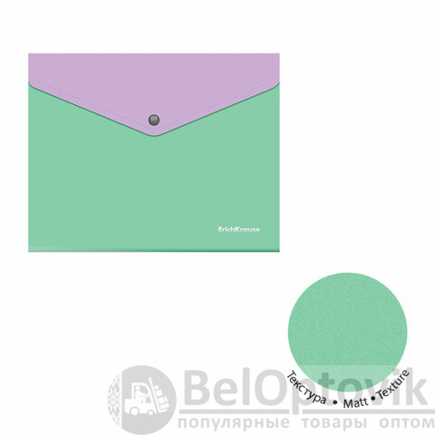 Папка-конверт на кнопке ERICH KRAUSE "Matt Pastel Bloom" с дополнительным карманом сзади формата А5+ из высококачественного непрозрачного пластика с текстурой поверхности "песок", на которой не видно отпечатков пальцев и мелких царапин.