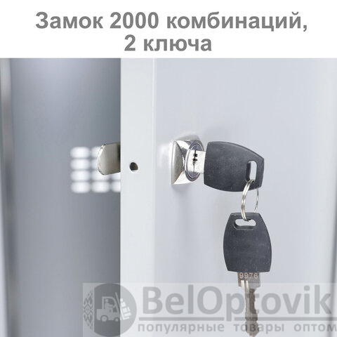 На двери установлен ключевой замок (2000 комбинаций). В комплекте 2 ключа.