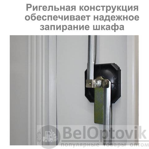 Оригинальная конструкция ригелей из оцинкованной стали и пластиковые втулки обеспечивают бесшумный ход дверей и надежное запирание шкафа.