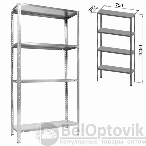 Стеллаж металлический ПРАКТИК "ES" облегченный (1450х750х300 мм), 4 полки, оцинкованная сталь, S24099033458