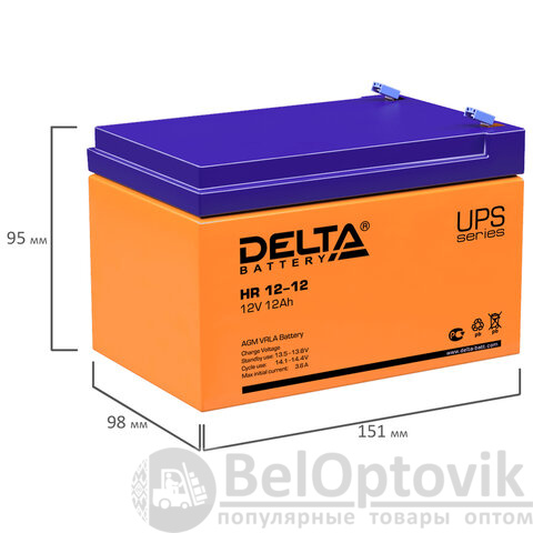 Аккумуляторная батарея для ИБП любых торговых марок, 12 В, 12 Ач, 151х98х95 мм, DELTA, HR 12-12