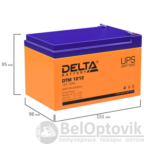 Аккумуляторная батарея для ИБП любых торговых марок, 12 В, 12 Ач, 151х98х95 мм, DELTA, DTM 1212