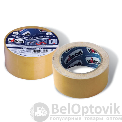 Клейкая двухсторонняя лента 50 мм х 25 м, ПОЛИПРОПИЛЕНОВАЯ ОСНОВА, UNIBOB, 28212