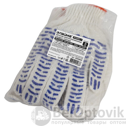 Хлопчатобумажные перчатки LAIMA "СТАНДАРТ" позволяют защитить руки от внешних воздействий в процессе физических нагрузок.