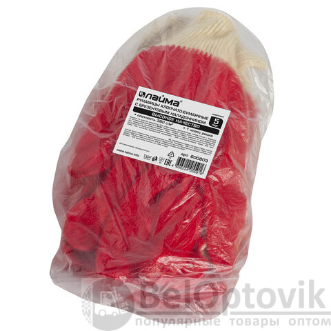 Перчатки хлопчатобумажные, износостойкие ОДИНАРНЫЙ латексный облив, 13 класс, КОМПЛЕКТ 5 ПАР, LAIMA ЛЮКС, 600802