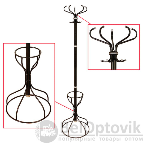 Компактная напольная вешалка-стойка с оригинальной конструкцией держателя для зонтов, идеально впишется в интерьер как офиса, так и дома. Недорогая модель, отличается качественным исполнением и современным дизайном.