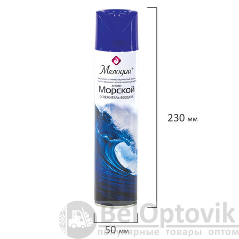 Освежитель воздуха МЕЛОДИЯ "Морской" быстро и эффективно устраняет неприятные запахи и освежает воздух в жилых и бытовых помещениях. Имеет приятный стойкий аромат, который надолго наполнит помещение свежестью.