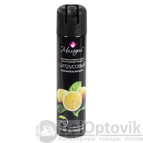 Освежитель воздуха МЕЛОДИЯ "Цитрусовый" быстро и эффективно устраняет неприятные запахи и освежает воздух в жилых и бытовых помещениях. Имеет приятный стойкий аромат, который надолго наполнит помещение свежестью.