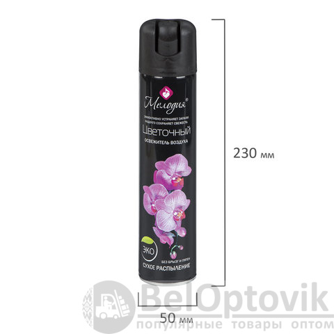 Освежитель воздуха аэрозольный с сухим распылением 300 мл МЕЛОДИЯ "ЦВЕТОЧНЫЙ", 601907