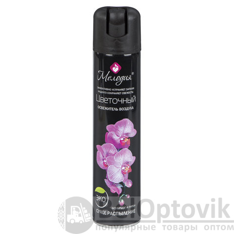 Освежитель воздуха МЕЛОДИЯ "Цветочный" быстро и эффективно устраняет неприятные запахи и освежает воздух в жилых и бытовых помещениях. Имеет приятный стойкий аромат, который надолго наполнит помещение свежестью.